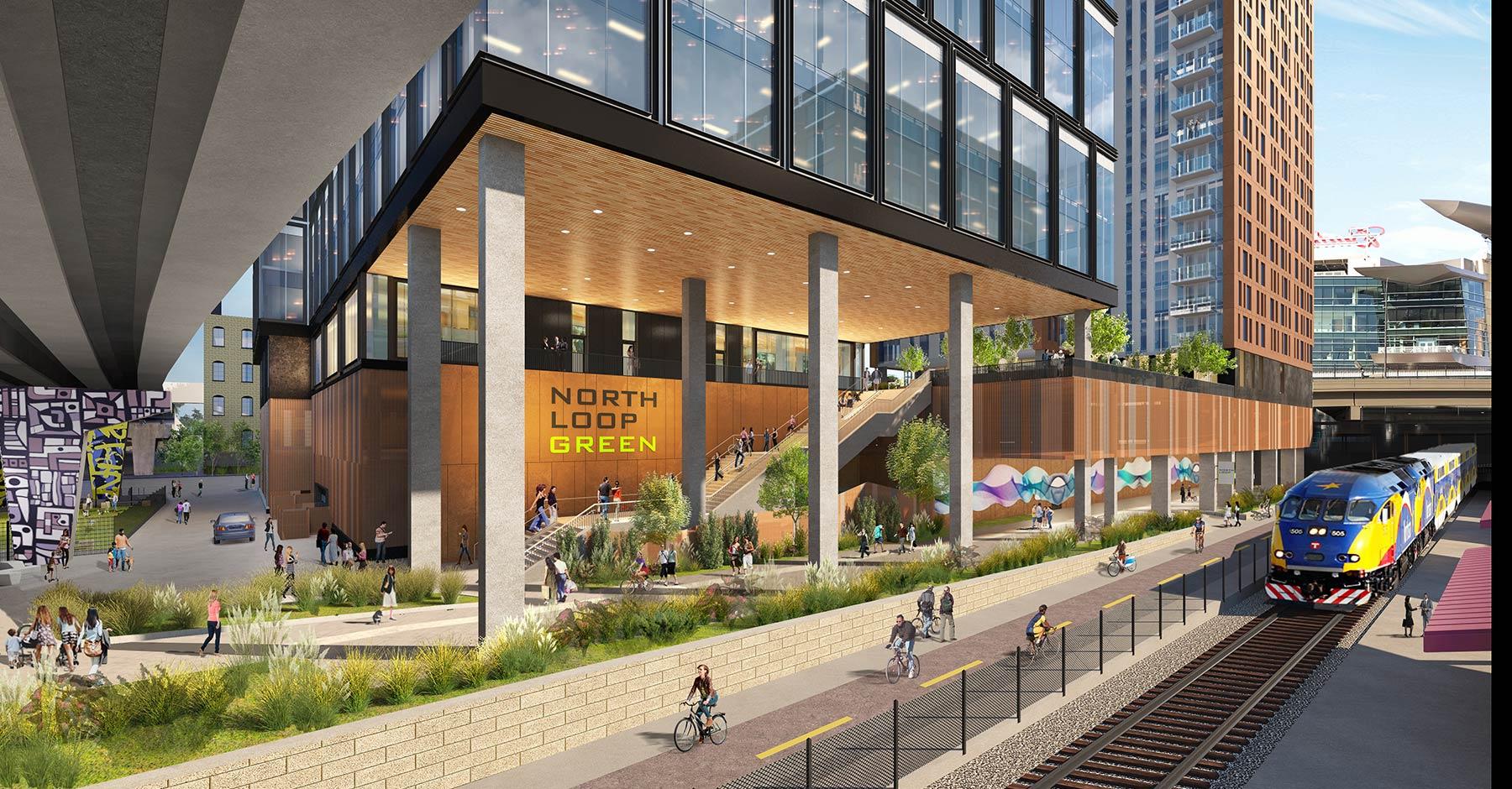 A high-density, transit oriented, mixed-use development - this project is the newest in the North Loop neighborhood. It will consist of market-rate rental units, short-term rental units, restaurant and amenity spaces, and parking stalls. The project also includes a multi-tenant office development that will provide new Class A office space, street-level commercial activity, and green space setup for large event entertainment.